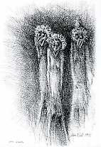 satirisch" zu Papier. So läßt sie z.B. in Ihrem Zyklus "Vogelscheuchen"