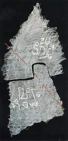 Flachsfasern, Textilfarbe, Holzstab; gefilzt, bemalt, 255x132cm