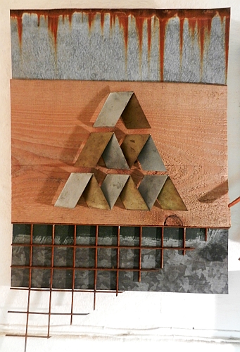 "cards1" - Eisen-/Messingblech, Montage, ca. 50x70cm, 1995